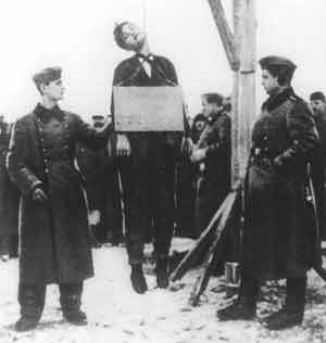 — Да, присутствовал. Офицер у неё спросил, как она поджигала деревню. Она ответила, что она деревню не поджигала. После этого офицер начал избивать Зою и требовал показаний, но она дать таковые категорически отказалась. Я в её присутствии показал офицеру, что это действительно Космодемьянская Зоя, которая вместе со мной прибыла в деревню для выполнения диверсионных актов, и что она подожгла южную окраину деревни. Космодемьянская и после этого на вопросы офицера не отвечала. Видя, что Зоя молчит, несколько офицеров раздели её догола и в течение 2—3 часов сильно избивали резиновыми палками, добиваясь показаний. Космодемьянская заявила офицерам: «Убейте меня, я вам ничего не расскажу». После чего её увели, и я её больше не видел.
