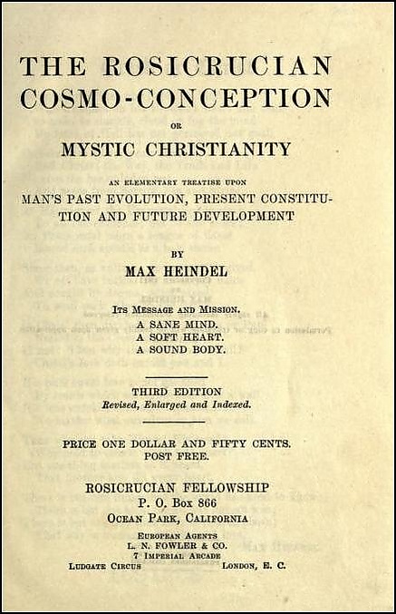 «Космоконцепция розенкрейцеров, или мистическое христианство (элементарный курс о прошлой эволюции, нынешнем строении и будущем развитии человека)» (англ. The Rosicrucian Cosmo-Conception or Mystic Christianity. An elementary treatise upon man's past evolution, present constitution and future development.) — книга американского теософа и розенкрейцера Макса Генделя[K 3][K 4][K 5] (1865—1919), где раскрываются эзотерические знания мистического общества розенкрейцеров, предлагая читателю универсальную схему эволюционных процессов человека и Вселенной, в соотношении с наукой и религией начала XX века.[K 6][K 7] С целью распространения учения, изложенного в книге, в том же 1909 году в Сиэтле (США) автором было учреждено поныне действующее Братство розенкрейцеров.[K 8][K 9]