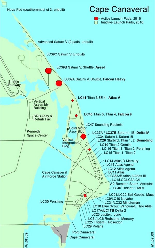 - Космопорт Флорида (США). Энциклопедия «Космонавтика». Дата обращения: 20 июля 2013. Архивировано 5 сентября 2013 года.