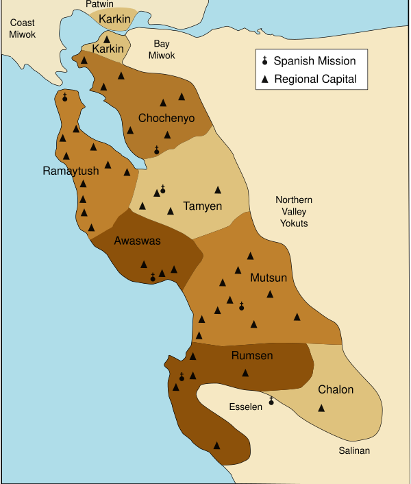 - Native Tribes, Groups, Language Families and Dialects of California in 1770 Архивная копия от 30 апреля 2011 на Wayback Machine (map after Kroeber)