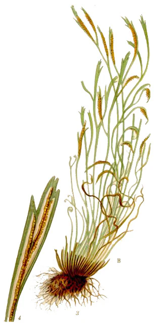 Корневище короткое, косо восходящее вильчато-ветвистое, покрыто бурыми линейными чешуйками.