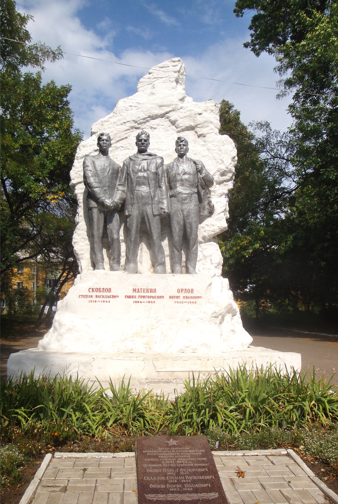 | «Непокорённые» | 1957 | Будённовский район Донецка | посвящён донецким подпольщикам Савве Григорьевичу Матекину, Степану Васильевичу Скоблову и Борису Ивановичу Орлову[8] | |