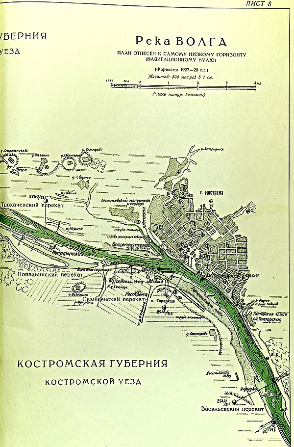 В черте города вблизи Ипатьевского монастыря находится старое русло реки Костромы, сейчас это дополнительный судовой ход, ведущий к судоремонтному заводу и отстойно-ремонтному пункту порта Кострома. Русло реки Костромы было перекрыто плотиной в черте города в 1955—1956 годах, что привело к созданию Костромского водохранилища (расширение Горьковского водохранилища). Новое искусственно созданное устье реки Костромы находится в 12 км выше по течению возле села Саметь.
