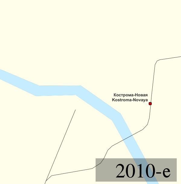 Железная дорога из Ярославля в Кострому была построена в 1887 году, и в Костроме она заканчивалась тупиковой станцией к югу от Волги[4]57°45′19″ с. ш. 40°53′39″ в. д.GЯO. Деревянное здание вокзала сохранялось до 2020-х годов.