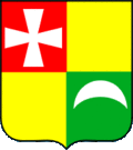 Щит, разделённый на четыре части: в первой, червлёной части серебряный крест, вторая и третья части золотые; в четвёртой, зелёной части серебряный полумесяц рогами вниз