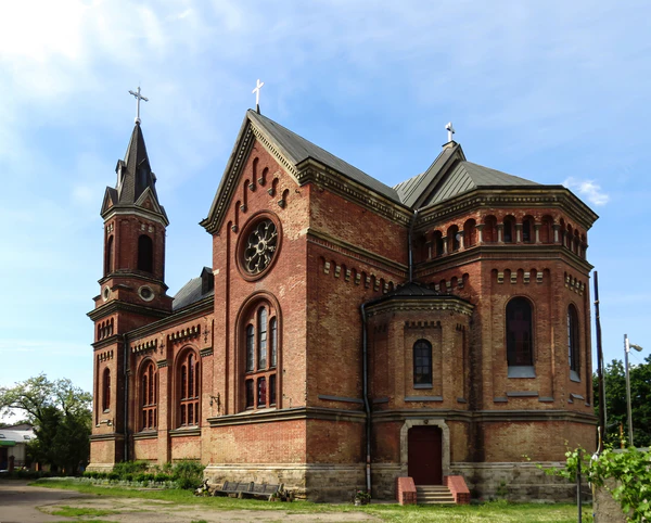 Величественное здание из красного кирпича с цветными витражными окнами выдержано в стиле «кирпичной готики». Внутри костёла стоит немецкий орган.