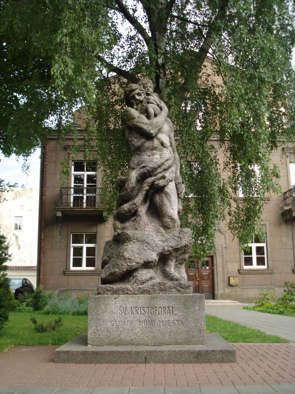Во дворе в 1957 году была установлена статуя покровителя Вильнюса святого Христофора (и небесного патрона погибшего при бомбардировке города ксендза Криступаса Чибираса) с младенцем на руках и текстом на постаменте на литовском языке «Святой Христофор, опекай наш город!», созданная по просьбе прелата Чесловаса Кривайтиса скульптором Антанасом Кмеляускасом (за что он был исключён из членов Союза художников Литвы).
