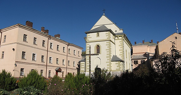 Комплекс построен в 1630-е годы на месте старых деревянных построек как армянокатолический костёл Святого Креста. В 1744 году здания были перестроены в стиле барокко по проекту немецкого архитектора Б. Меретини. В результате перестроек, проводившихся в XIX и XX веках, изменился интерьер и появились пристройки.