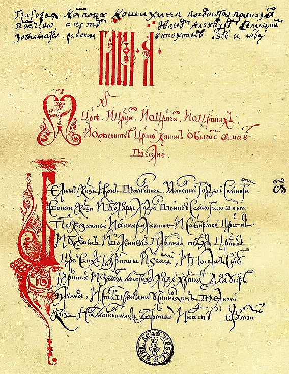 В 1835—1837 годах о Котошихине и его труде узнал русский писатель и историк А. И. Тургенев, поставивший об этом в известность императора Николая I. В 1837 году филолог профессор Гельсингфорского университета С. В. Соловьёв отыскал в стокгольмском государственном архиве шведский перевод сочинения Котошихина, а в 1838 году отыскал в библиотеке Упсальского университета оригинал, имевший заголовок «Григорья Карпова Кошихина, Посольского приказа подьячего, а потом Иваном Александром Селецким зовомого работы в Стохолме 1666 и 1667»[10][19]. Соловьёв сделал с него копию, которая в 1840 году была издана археографом Я. И. Бередниковым[5].