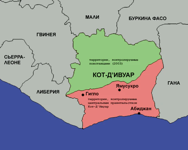 Основной повстанческой группировкой севера, возможно, пользовавшейся поддержкой правительства Буркина-Фасо, были «Патриотические силы Кот д’Ивуар» во главе с Гийомом Кигбафори Соро. Кроме того, на востоке страны действовали другие группировки.
