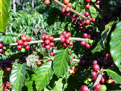 Цветёт кофе небольшими белыми цветками с сильным тропическим запахом. Цветок содержит как мужские, так и женские половые органы (пестики и тычинки) и способен к самоопылению.