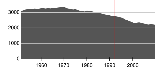 Население коммуны за последние 60 лет: