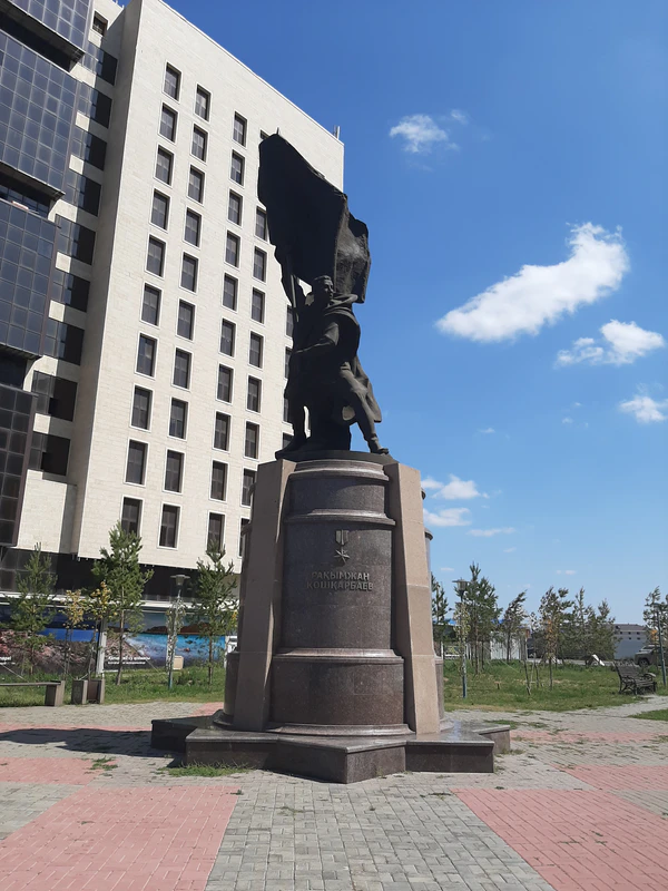 В городе Астана у пересечения проспектов Бауыржана Момышулы и Рахимжана Кошкарбаева установлен памятник.