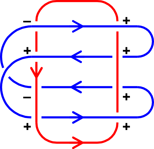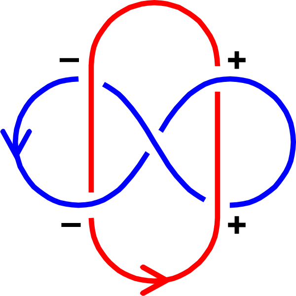 Обозначим символами , , и количества перекрёстков каждого из четырёх типов. Иными словами, — количество положительных перекрёстков, на которых красная компонента проходит под синей, — количество положительных перекрёстков, на которых красная компонента проходит над синей, и так далее. Тогда выполняется соотношение[7] . В частности,