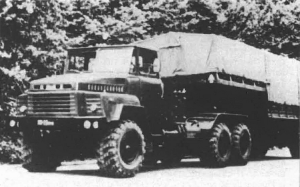 Грузовая платформа металлическая с задним открывающимся бортом, снабжена откидными скамейками, дугами и тентом[2]. Для увеличения проходимости применены постоянный полный привод, короткие передний и задний свесы, односкатная ошиновка, система регулирования давления в шинах. В выпускной системе отсутствует глушитель — часть энергии отработанных газов поглощает турбина нагнетателя. Запас топлива размещён в 2 основных и 1 дополнительном топливных баках. Сцепление двухдисковое сухое.