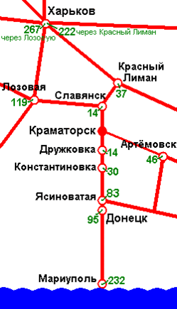 | Линия Славянск-Горловка Линия Краматорск-Бахмут Линия Ясиноватая-Лиман | |