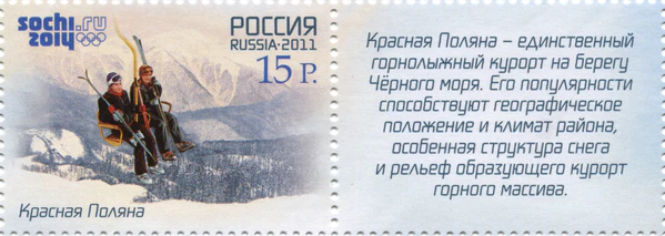 - 2011: В тестовом режиме запущен горнолыжный комплекс «Роза Хутор»[25]. В феврале на его трассах состоялись первые международные тестовые соревнования — этап Кубка Европы по горнолыжному спорту[26]. Активно велось строительство олимпийских объектов, включая Горную олимпийскую деревню[27].