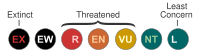 - ↑ Видам этой категории присваивается кодировка, уточняющая степень угрозы. Система состоит из заглавной буквы (от A до E), цифры (от 1 до 4), строчной буквы и римской цифры в нижнем регистре.
