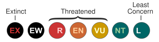 - Таксоны, близкие к уязвимому положению (NT, от Near Threatened)