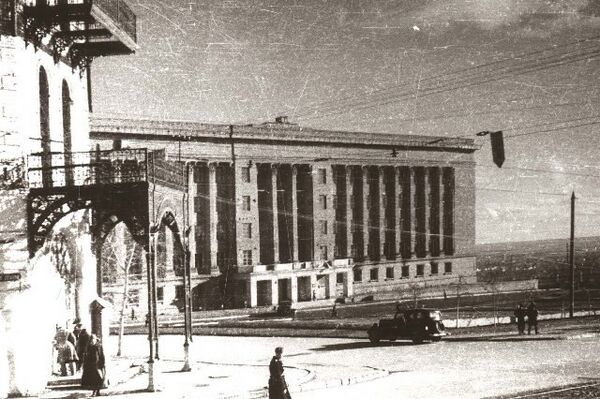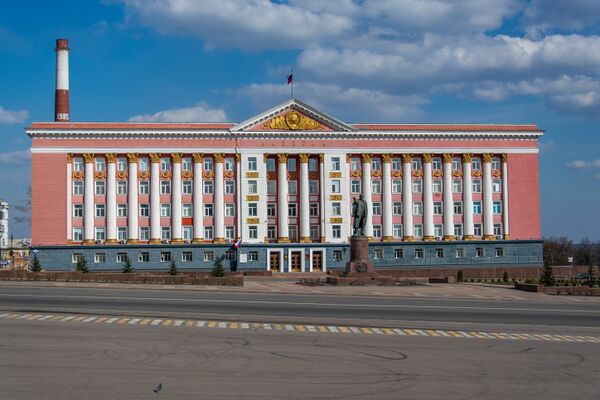 Пятиэтажное здание администрации Курской области (шестиэтажное со стороны улицы Горького) построенное в стиле классицизм. Архитектор — Алексей Григорьевич Шуклин, автор проекта — С. Алмазова. 10 марта 1939 года был отведён участок под строительство, возведение здания началось летом того же года. Основные работы были завершены к маю 1941 года, можно было приступить к внутренней и внешней отделке здания, но помешала война. В период оккупации города немцами южное крыло здания было сожжено, а сохранившейся части нанесены большие повреждения. После освобождения Курска, осенью 1943 года началось восстановление Дома Советов, который планировалось ввести в эксплуатацию к 1 июля 1944 года. Однако из-за несвоевременного и неполного обеспечения строительными материалами здание было сдано только 7 ноября 1947 года, к Тридцатой годовщине Октябрьской революции. В качестве скульптора-соавтора В. А. Дмитриев выполнил работу по лепке, формовке, отливке и установке Государственного Герба СССР на фронтоне Курского Областного Дома Советов, участвовал в лепке и изготовлении всех моделей лепных архитектурных деталей для фасада Дома Советов. В советское время в здании размещались областной комитет ВКП(б)—КПСС, областной Совет народных депутатов, областной исполнительный комитет, областной комитет комсомола. Проект курского Дома Советов оказался настолько удачным, что по нему же, с небольшими изменениями, в 1956 году был построен Дом Советов в Красноярске[1][2].