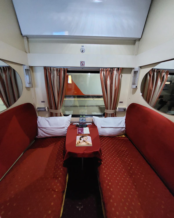 - вагона класса «люкс» (всего в вагоне 4 купе по 2 места, купе выкупается целиком максимум для двоих взрослых и одного ребёнка).