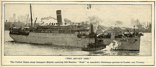 21 декабря 1919 года правительство США депортировало 249 человек на корабле «Буфорд», который пресса назвала «Советским ковчегом». Из этих 249 человек 199 были арестованы 7 ноября 1919 года во время «рейдов Палмера». В общей сложности на «Буфорде» и другими способами был депортирован 351 человек, все — недавние иммигранты, не имевшие гражданства.