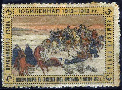 - В 1912 году была выпущена юбилейная земская марка Краснинского уезда, посвященная 100-летию Милорадович в Сражении под Красным.