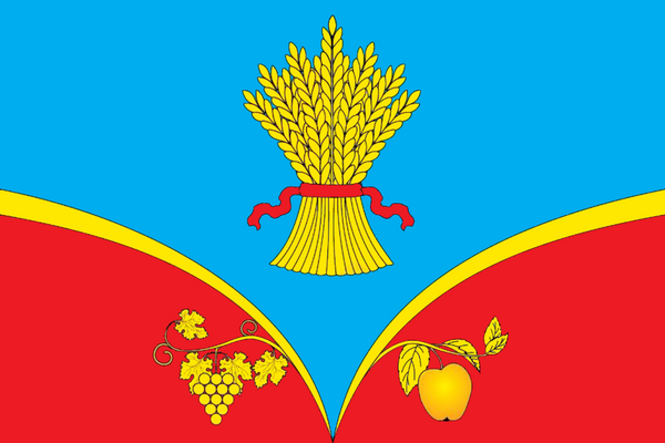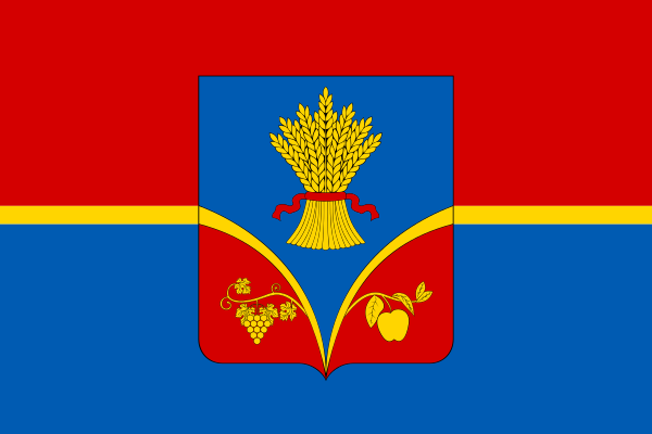 Решением Красногардейского районного совета от 16 сентября 2011 года № 7/113-XIII был утверждён флаг района — прямоугольное полотнище с соотношением сторон 2:3, состоящее из двух горизонтальных полос красного и синего цвета, разделенных жёлтой полосой шириной 1/25 ширины флага. В центре флага располагался малый герб района высотой 7/10 ширины флага[34]. Герб района, согласно утверждённому в тот же день решению 112-XIII, представлял собой прямоугольный щит с закругленными нижними углами и острием, с соотношением ширины к высоте 8:9. На щите в синем поле с двумя выпуклыми нижними красными углами, отделенными золотой сужающейся книзу каймой и обремененными справа золотой виноградной лозой, а слева золотой яблоневой ветвью с золотыми плодами, располагался золотой сноп пшеницы, перевязанный красной лентой. Щит положен на серебряный картуш, увенчан серебряной короной, составленной из колосьев и подсолнуха, и украшен снизу синей лентой с названием района серебряными буквами. Щит был положен на серебряный картуш, увенчан серебряной короной, составленной из колосьев и подсолнуха, и украшен снизу синей лентой с названием района серебряными буквами[35]; до 2011 года действовал иной герб — «в щите на красном фоне, иллюстрирующем название района, изображение яблока, как стилизованного отображения границ района и олицетворением плодоносящего, живительного начала, в лучах восходящего солнца — элемент герба Автономной Республики Крым»[36].