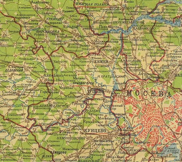 28 мая 1940 года был образован Химкинский район. В его состав из Красногорского района были переданы город Химки; р.п. Краснооктябрьский и Никольский; д.п. Ново-Ховрино; сельсоветы Аксиньинский, Бусиновский, Куркинский, Новолужинский, Петрово-Лобановский, Химкинский и Юрловский.