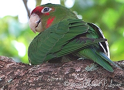 Краснолицая аратинга[1] (лат. Aratinga mitrata) — птица семейства попугаевых.