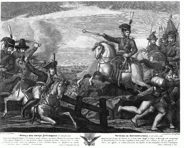 В 1812 году под Красным произошли два сражения Отечественной войны (2 августа и 3—6 ноября). В августе, в ходе организованного отступления русской армии к Москве, пехотная дивизия генерала Д. П. Неверовского, отступавшая последней, целый день отбивала атаки превосходящих сил французской кавалерии маршала И. Мюрата. В ноябре, многократно превосходящие силы русских войск атаковали отступавшую к границе французскую армию, нанесли ей значительные потери[6].