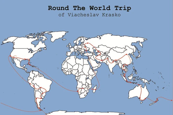 Кругосветное путешествие началось в апреле 2010 года с Азии[12] и продолжалось 407 дней. Сначала путешественник вылетел из Москвы в Узбекистан, затем полетел дальше на восток, потом на юг в Австралию, затем перелетел в Южную Америку, поднялся выше в Северную, откуда перелетев Атлантику очутился в Африке. Затем Красько пересёк Африку и через страны Европы вернулся в Москву[4]. Всего в своём путешествии Вячеслав посетил 6 континентов, 36 стран и 145 городов, преодолев расстояние 137 000 км. Годовой бюджет путешествия составил 33 тысячи долларов США[13]. По мнению Вячеслава Красько 5 самых интересных мест из его маршрута это Непал, Аргентина, Австралия, Антарктида и Танзания[12]. За передвижением Вячеслава с помощью специально созданного сайта, в интерактивном режиме следило большое количество людей.