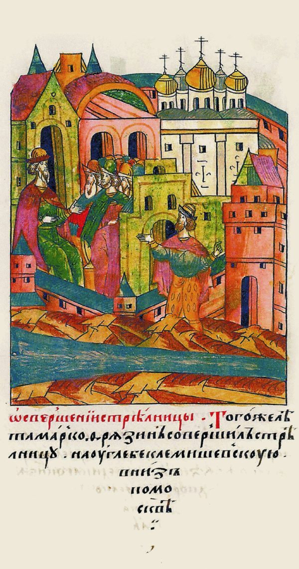 Toe же зимы (1367 г.) князь великый Димитрей Иванович, погадав с братом своим с князем с Володимером Андреевичем и с всеми бояры старейшими и сдумаша ставити город камен Москву, да еже умыслиша, то и сотвориша. Toe же зимы повезоша камение к городу[20].