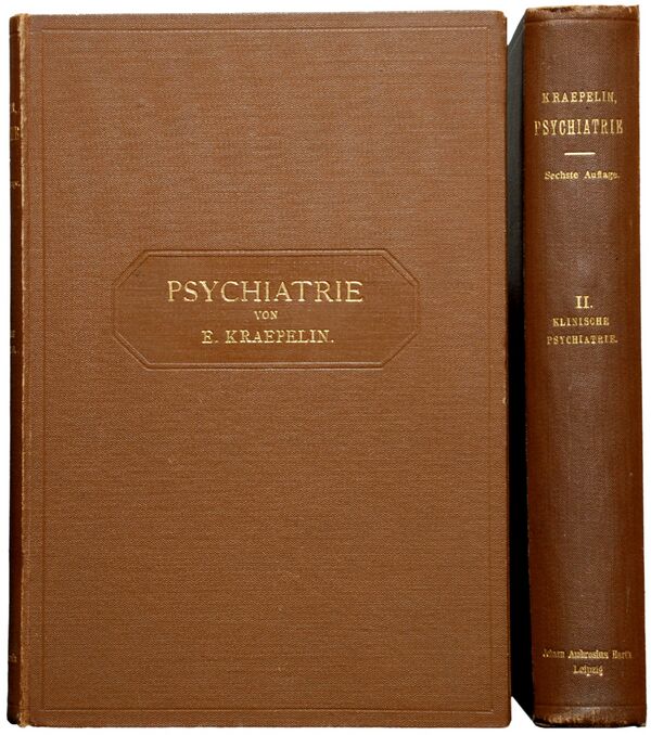 Первое издание Эмиля Крепелина, содержащее его собственную классификацию психических болезней, было опубликовано издательством Амвросия Абеля в Лейпциге в 1883 году. Второе издание под изменённым оглавлением «Психиатрия: краткий учебник для студентов и врачей» (нем. Psychiatrie: ein kurzes Lehrbuch für Studierende und Ärzte) издали в 1887. Прорывом было 6-е издание в 1899 году, которому предшествовала лекция в Хайдельберге 27 ноября того же года. В ней Э. Крепелин сделал радикальное упрощение классификации психических расстройств, разделив их на психозы с ослабоумливающим прогрессирующим течением (нем. Verblödungen) и психозы аффективные с периодическим или циклическим течением. Так называемая крепелиновская дихотомия нашла отражение в критериях DSM-III и более поздних классификаций[48]. До сих пор существующая классическая нозологическая концепция определяется (особенно в отношении группы американских психиатров, работавших над DSM-IV) как неокрепелиновское движение[49]. В ходе работы над DSM-V и МКБ-11 о целесообразности концепции Крепелина продолжили вести дискуссию[50][51][52][53].
