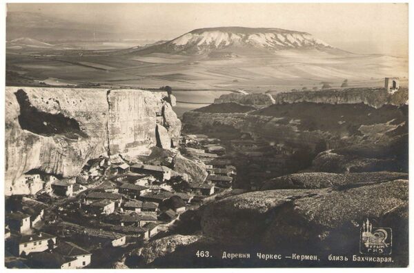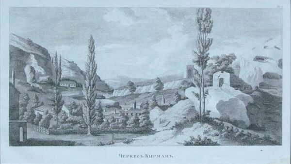 …башня старого укрепления, называемого татарами Черкез-Кермен, давшая своё название близлежащей деревне, где прежде жили греки, теперь же живут только татары[20].