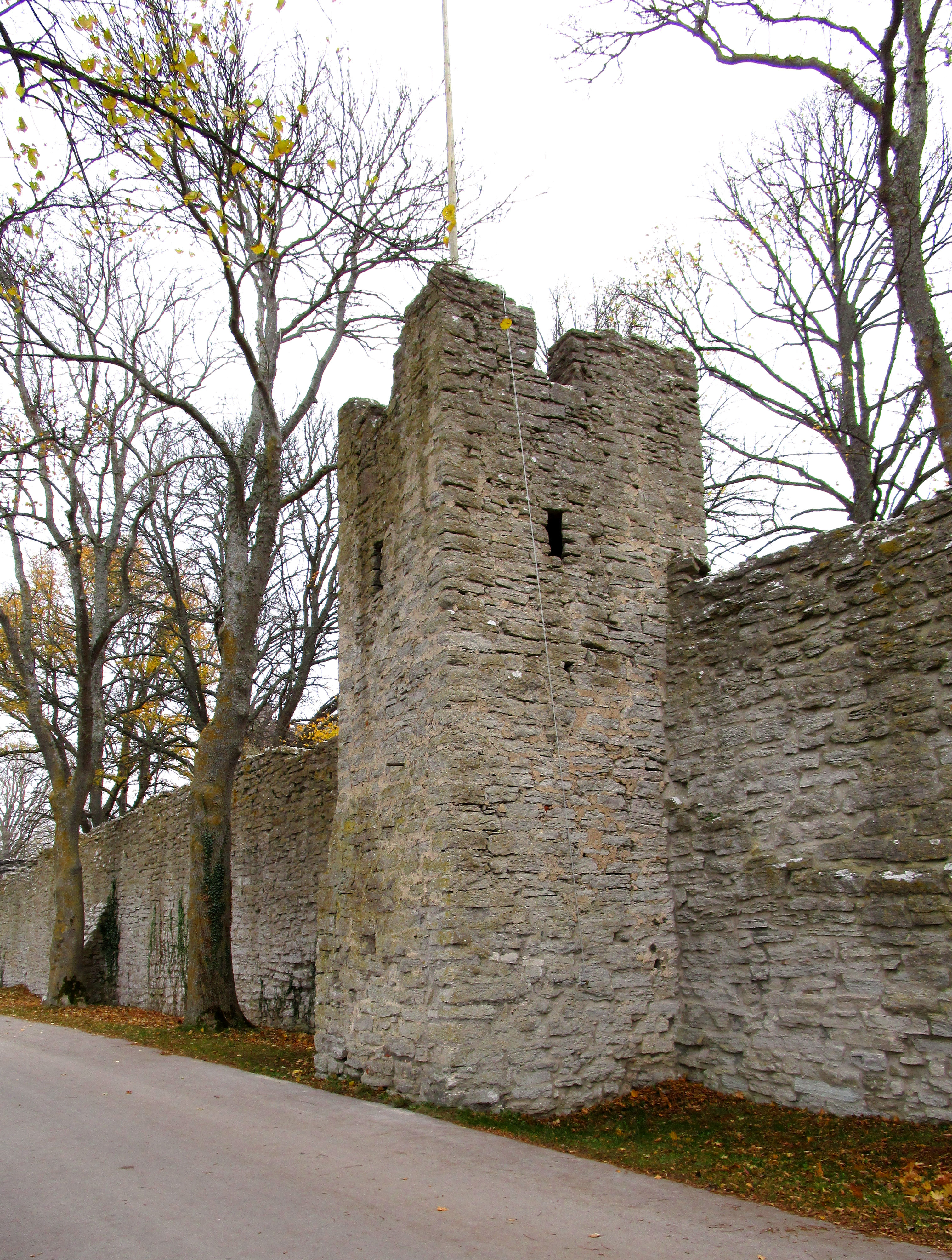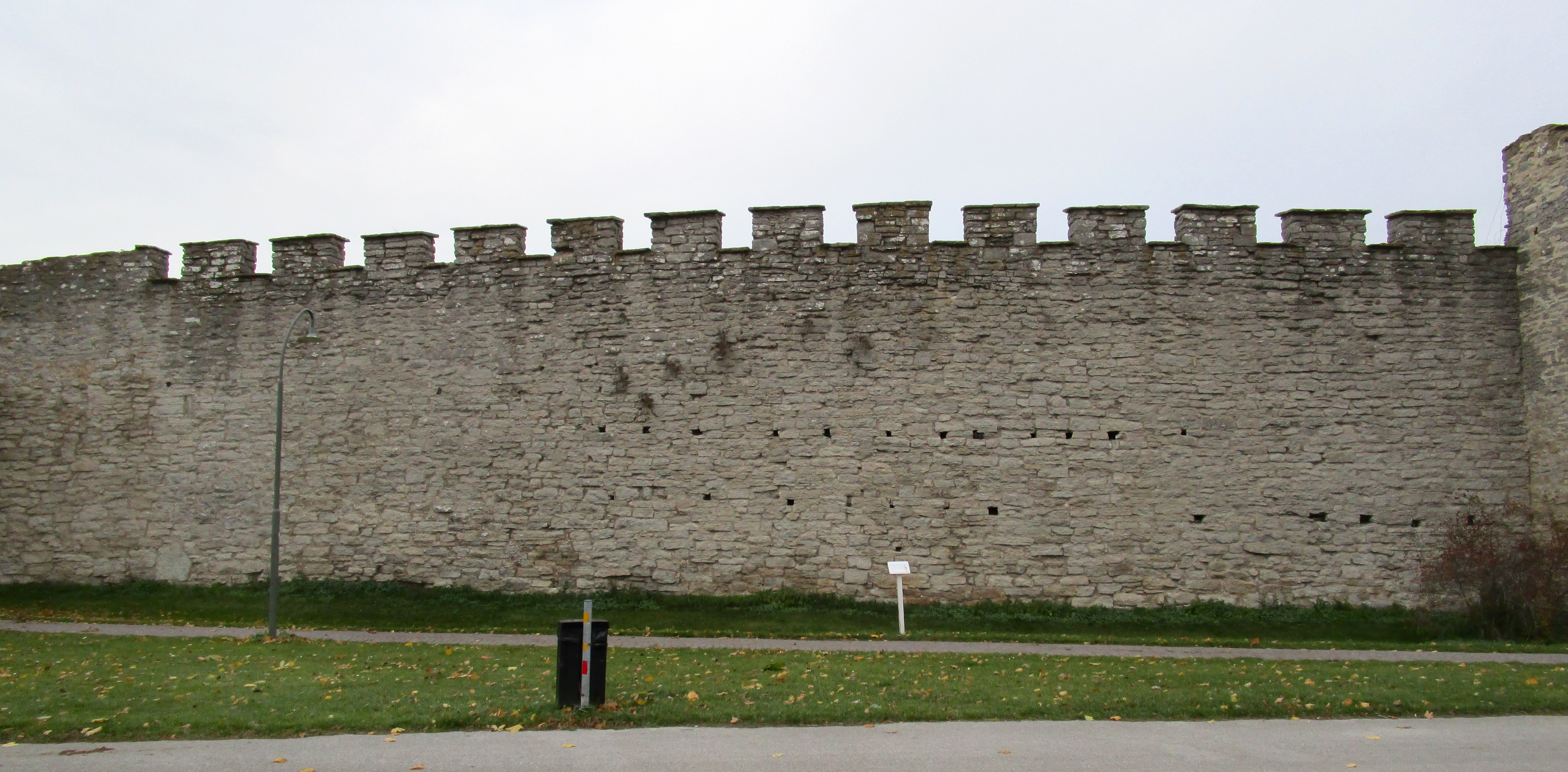 | Стена Вальдемара | Valdemarsmuren | Valdemarsmuren была разрушена и затем восстановлена в неизвестный период времени. Гребень стены отличается от других участков стены, а также на ней отсутствуют бойницы. Согласно легенде, это та часть стены, которую в 1361 году разрушили король Дании Вальдемар IV и его войска разрушили, войдя в город через брешь шириной в 13 мужей. Позже было выяснено, что стена не была полностью разрушена до уровня земли. На внутренней стороне стены арки на нижнем уровне первоначальной стены остались нетронутыми[54] | ||
