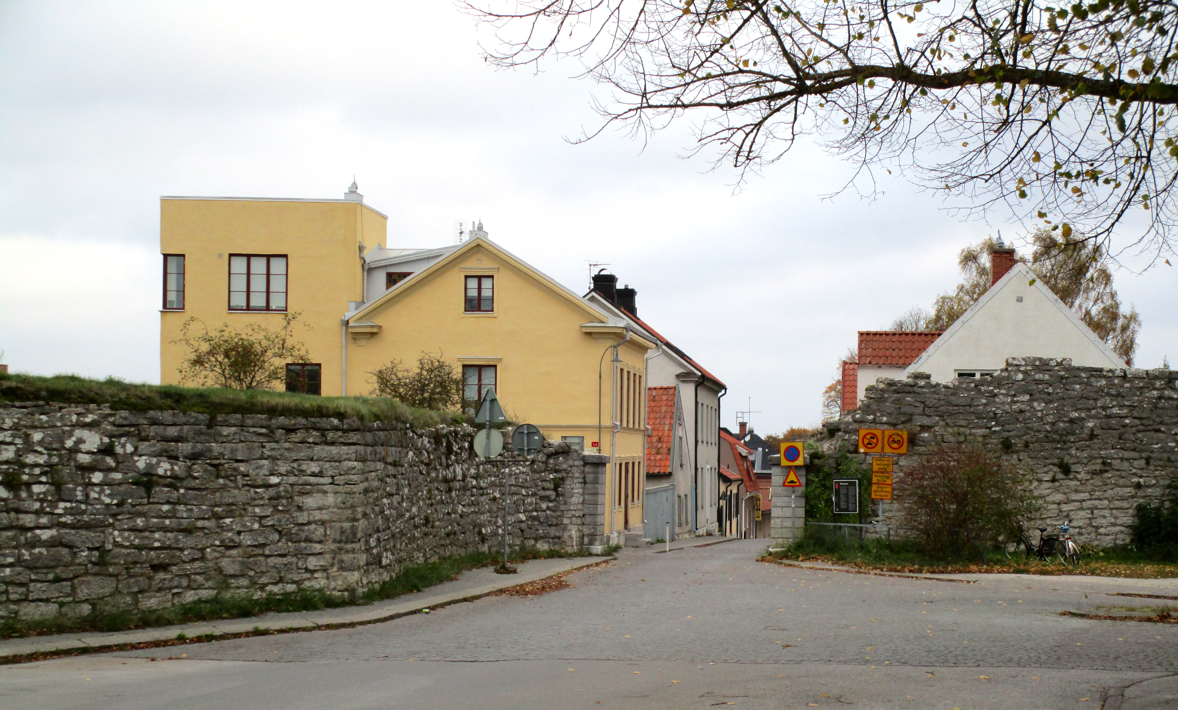 | Школьные ворота | Skolporten | Skolporten. Когда в 1891 году снаружи городской стены была построена школа, для удобства учеников также были добавлены небольшие ворота. С тех пор ворота несколько раз расширялись, а стена у ворот частично обрушилась[45]. В настоящее время это один из немногих въездов в Старый город для автомобилей[23]. Школа, известная как Solbergaskolan, всё ещё находится снаружи ворот[46]. | ||