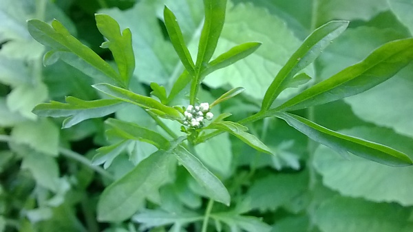 Нижние листья единожды- или дваждыперистораздельные; средние листья триждыраздельные; верхние цельные, линейные[2].