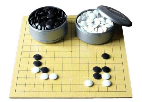 - Гомоку — японское название древней китайской логической игры. Игра проходит на доске, расчерченной линиями. Традиционный вариант предусматривает игру на поле 19×19, в спортивном варианте используется поле 15×15. Игроки поочерёдно выставляют на доску камни чёрного и белого цвета. Цель игры состоит в построении одним из игроков непрерывного ряда ровно из пяти камней своего цвета по вертикали, горизонтали или диагонали[3].