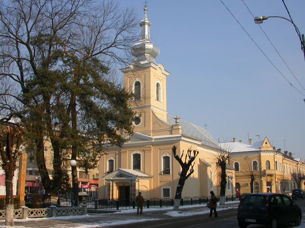 Украинская грекокатолическая церковь была построена в 1791—1807 годах и является одной из старейших в городе[2]. Первоначально она была посвящена Рождеству Пресвятой Богородицы, но после ремонта 1897 была переосвящена во имя Воздвижения Креста Господня[3]. 1 декабря 1948 года Румынская грекокатолическая церковь была запрещена декретом 358/1948 Президиума Великого национального собрания Румынии. Соответственно, Грекокатолическое украинское викариатство, к которому тогда относился храм, было также ликвидировано. Храм был передан Румынской православной церкви, где он вошёл в состав новосозданного Православного украинского викариатства[2].