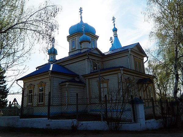 Архитектура храма принадлежит деревянному русскому стилю, который характерен для церквей рубежа XIX—XX вв. Такой тип зданий встречается во многих сельских церквях Уфимского уезда и губернии. Здание сделано из брёвен «в лапу» и обшито тёсом. Ныне оно имеет белую окраску с жёлтой отделкой. Крыша и купола окрашены в голубой цвет. Храм является семикупольным. Кресты сделаны из зеркального стекла, вставленного в чугунные рамки.