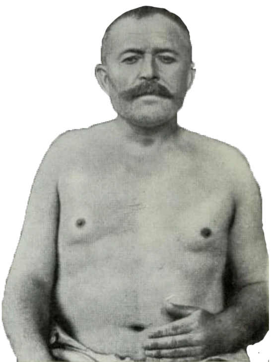 Пикнический тип людей обычно среднего роста с плотной фигурой, с мягким широким лицом на довольно небольшой, но массивной шее, с основательным жирным животом[5].