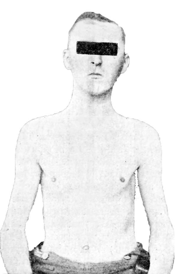 В тяжёлых случаях — это худощавый, тонкий, малокровный, с тонкокостными кистями, с узкими плечами, лишённым жира животом и отставанием веса тела от его длины[5].