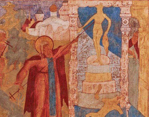 Принятие христианства как государственной религии неизбежно влекло ликвидацию языческих культов, пользовавшихся до того великокняжеским патронатом. Разрушались культовые сооружения — идолы, капища[54]. Духовенство осуждало языческие обряды и празднества (некоторые из них сохранялись долгое время вследствие того, что некоторыми исследователями квалифицируется как религиозный синкретизм или «двоеверие»[55]).
