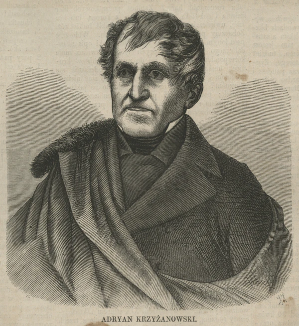 Адриан Кржижановский родился 8 сентября 1788 года. Был профессором в Варшаве. Главные труды: «Z czyjej bardziej winy, krolów czy narodu, Polska upadła» (Кельцы, 1821); «O życiu uczonem Stanisława Solskiego» (Варш., 1822); «Dawna Polska ze stanowiska jej udziału w dziejach postępującej ludzkości skreślona w jubileuszowym Mikołaja Kopernika roku 1843»[3] (Варш., 1844); это наиболее капитальное исследование Кржижановского интересно в связи с тем, что в нём впервые в польской литературе проявляется влияние Огюста Конта.