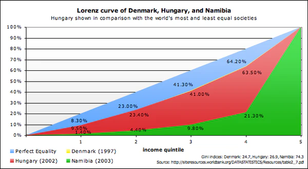 Из кривой Лоренца можно вывести количественные показатели неравенства, например, коэффициент Джини и индекс Робин Гуда.