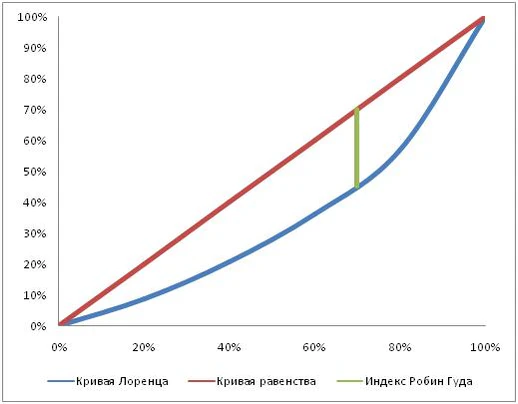 Индекс Робин Гуда (Robin Hood index), также известный как индекс Гувера (Hoover index), — это ещё один показатель неравенства по доходам, имеющий связь с кривой Лоренца. Он равен той доле дохода общества, которую необходимо перераспределить для достижения равенства. Графически он представим как самый длинный вертикальный отрезок, соединяющий фактическую кривую Лоренца с линией равенства (биссектрисой I координатной четверти).