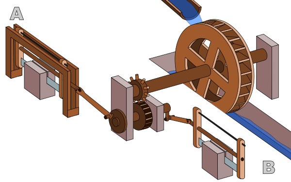 Самые ранние свидетельства появления на машине рукоятки в сочетании с шатуном относятся к пилораме из Иераполиса, 3-й век нашей эры, римский период, а также византийским камнережущим пилорамам в Герасе, Сирии и Эфесе, Малая Азия (6-й век нашей эры).[4] Ещё одна такая пилорама возможно существовала во 2 веке н. э. в римском городе Августа-Раурика (современная Швейцария), где был найден металлический кривошип.[5]