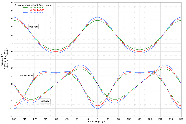 Уравнения, которые описывают циклическое движение поршня по отношению к углу поворота кривошипа.