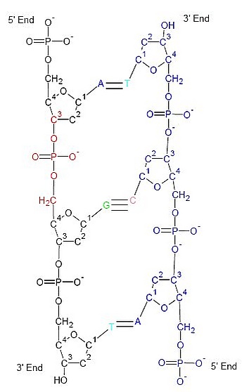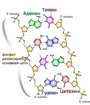 Другими подсказками к открытию правильной структуры ДНК были так называемые соотношения Чаргаффа — экспериментально определённые соотношения нуклеотидных субъединиц ДНК: количество гуанина равно количеству цитозина и количество аденина равно количеству тимина. Приезд Эрвина Чаргаффа в Англию в 1952 году лишний раз подчеркнул этот важный факт для Уотсона и Крика[43]. Для определения структуры ДНК эти соотношения не находили никакого применения до тех пор, пока Уотсон, занимаясь построением структурных моделей, понял, что А—T и C—G пары структурно похожи. В частности, длины этих пар оснований одинаковы. Чаргафф также заметил Уотсону, что в водной среде клетки преобладающими таутомерами пиримидиновых оснований (C и Т) будут амино- и кето- таутомеры цитозина и тимина, а не иминные и енольные формы, как изначально считали Крик и Уотсон. Они также консультировались с Джерри Донохью, который подтвердил наиболее вероятные структуры нуклеотидных оснований.[44] Азотистые основания удерживались вместе водородными связями — теми же нековалентными взаимодействиями, которые стабилизировали белок α-спирали. Правильные структуры были важны для определения правильного расположения водородных связей. После открытия водородного связывания между парами A:T и C:G, Уотсон и Крик вскоре расставили цепи нуклеотидов антипараллельно в виде двойной спирали, азотистые основания были обращены внутрь спирали и соединялись между собой водородными связями. Тем самым был наглядно представлен способ распаковки двух комплементарных цепей (разрыв водородных связей) в репликации. Возможность репликации была последним требованием к модели генетической молекулы. Впоследствии Крик отметил, что без сотрудничества с Уотсоном он не смог бы найти правильную структуру молекулы ДНК самостоятельно[45].